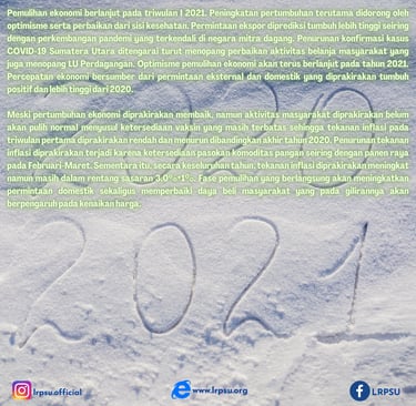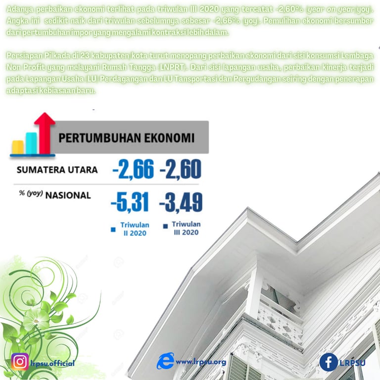 Pandemi Covid-19 berdampak pada perubahan tatanan kehidupan sosial serta menurunnya kinerja ekonomi di sebagian besar negara di dunia, tak terkecuali Indonesia. Penurunan pertumbuhan ekonomi Indonesia juga memberikan pengaruh besar bagi perekonomian Sumatera Utara. Kontribusi ekonomi Sumut terhadap nasional cukup besar yakni mencapai 5,06 persen.