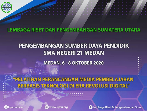 Inovasi dan kreativitas guru seolah sedang di uji di tengah wabah virus corona. Guru harus mampu merencanakan dan melaksanakan pembelajaran yang kreatif dan inovatif dengan media pembelajaran yang sesuai melalui pemanfaatan teknologi. Selama 3 hari Lembaga Riset dan Pengembangan Sumatera Utara (LRPSU) memberikan pelatihan dan pendampingan mendesain dan merancang media pembelajaran untuk guru guru di SMA Negeri 21 Medan agar hasil media dapat dimanfaatkan pada peserta didik.